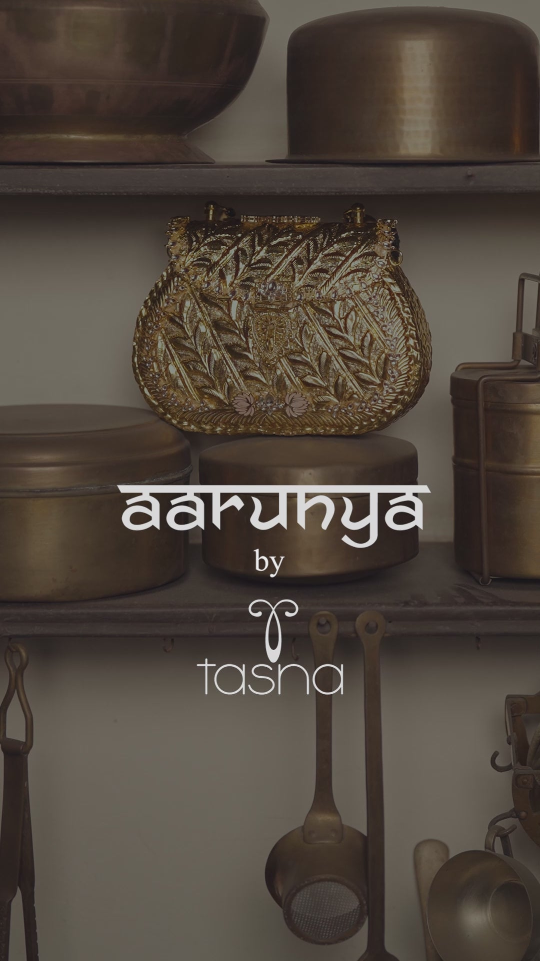 Hand-Carved Brass Metal Bag with Gold Finish – Embellished with Kundan & Meenakari Work Celebrate Indian heritage with this exquisite handcrafted brass bag. Meticulously carved by skilled artisans, this metallic clutch features a rich *gold finish, and is adorned with **Kundan stones* and traditional *Meenakari (enamel) work*, reflecting the opulence of royal Indian craftsmanship
